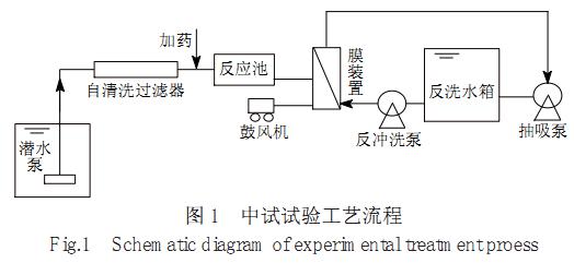 混凝小試主要采用燒杯和六聯攪拌器,六聯攪拌器設置參數為:快速120r/min,轉動2min;慢速80r/min,轉動8min,靜沉10min。中試試驗裝置如圖1所示。