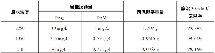 PAC+PAM處理不同濁度水的最佳投藥量和絮凝效果